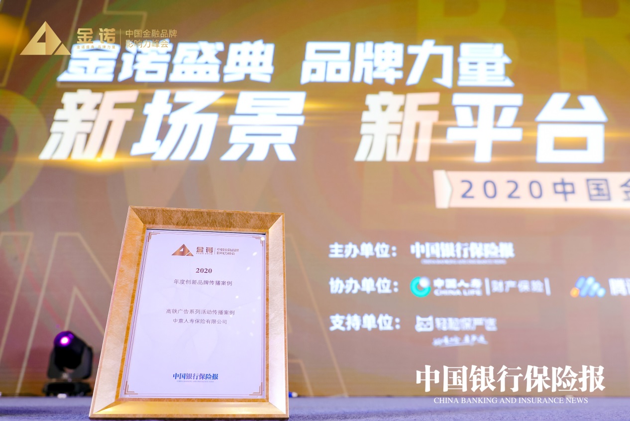 8月21日,由《中國銀行保險報》主辦的“金諾盛典•品牌力量”2020中國金融品牌影響力峰會在云南昆明落下帷幕。《中國銀行保險報》是中國銀行保險監督管理委員會主管的唯一工作日報。“金諾品牌盛典”是由《中國銀行保險報》傾力打造,在業內擁有較高權威的獎項評選活動。本次盛會邀請了來自業內外品牌管理資深人士,深入探究互聯時代金融品牌建設的策略和路徑,發布了品牌傳播的經典案例,中意人壽憑借“高鐵廣告系列活動傳播案例”榮膺2020年度創新品牌傳播案例大獎。