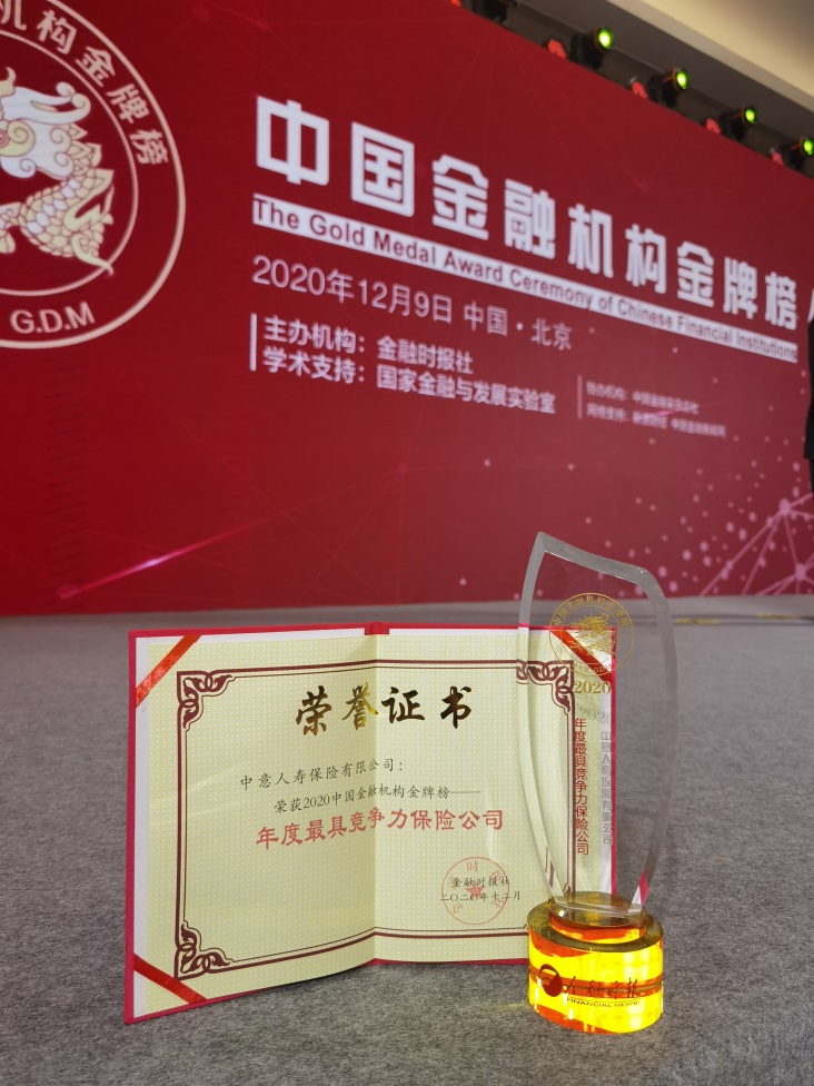 中意人壽獲評(píng)2020年中國(guó)金融機(jī)構(gòu)金牌榜•金龍獎(jiǎng)“年度最具競(jìng)爭(zhēng)力保險(xiǎn)公司”,體現(xiàn)了金融界權(quán)威專家、媒體及社會(huì)各界對(duì)中意人壽未來發(fā)展的充分肯定。