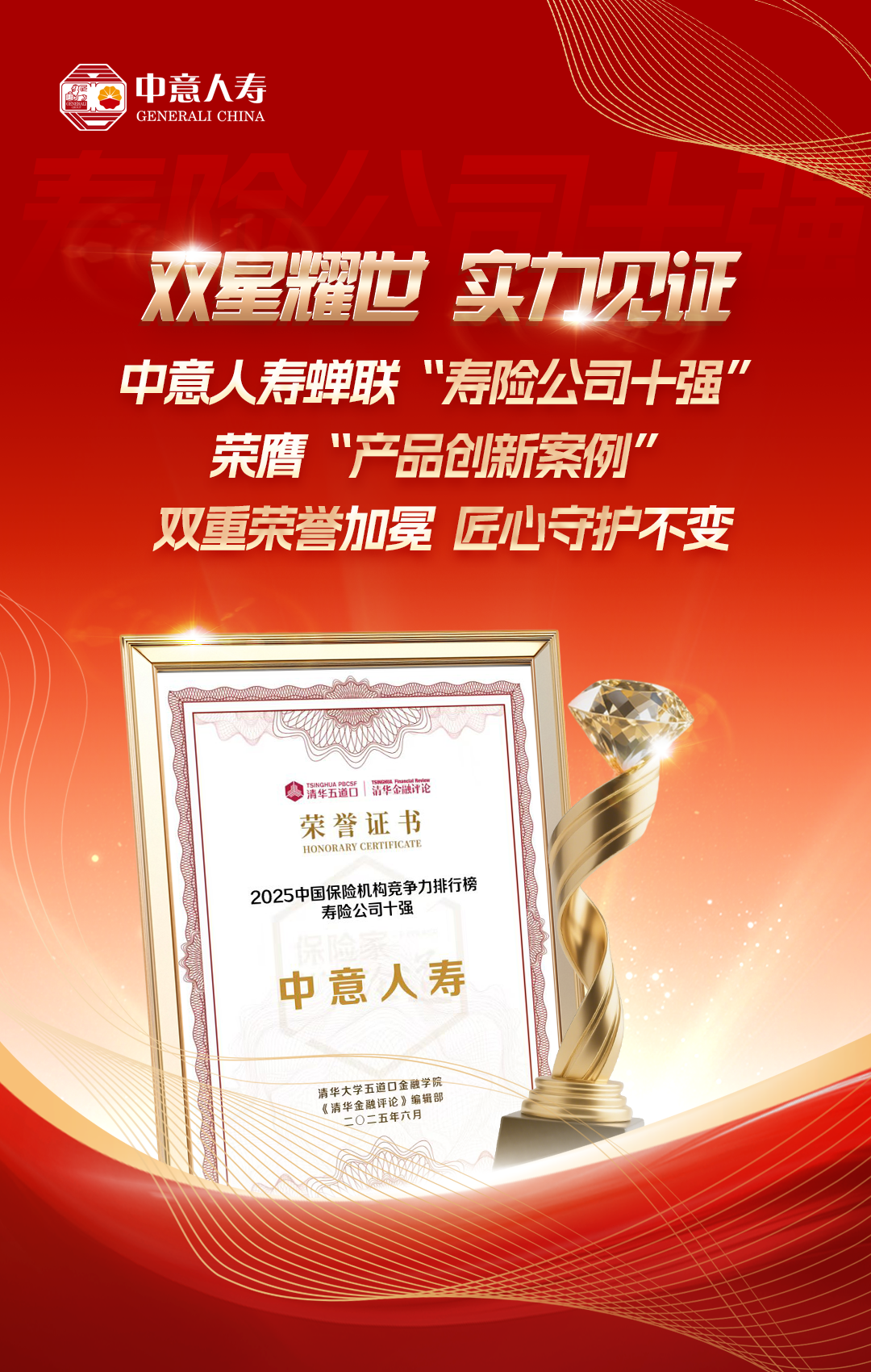 近日,《清華金融評論》正式發(fā)布《2025中國保險競爭力研究報告》,中意人壽保險有限公司(以下簡稱“中意人壽”)憑借其不斷攀升的綜合實力與創(chuàng)新能力,蟬聯(lián)《中國保險競爭力排行榜》“壽險公司十強”,并憑借“一生摯愛”系列產(chǎn)品,獲評“年度產(chǎn)品創(chuàng)新典型案例”。