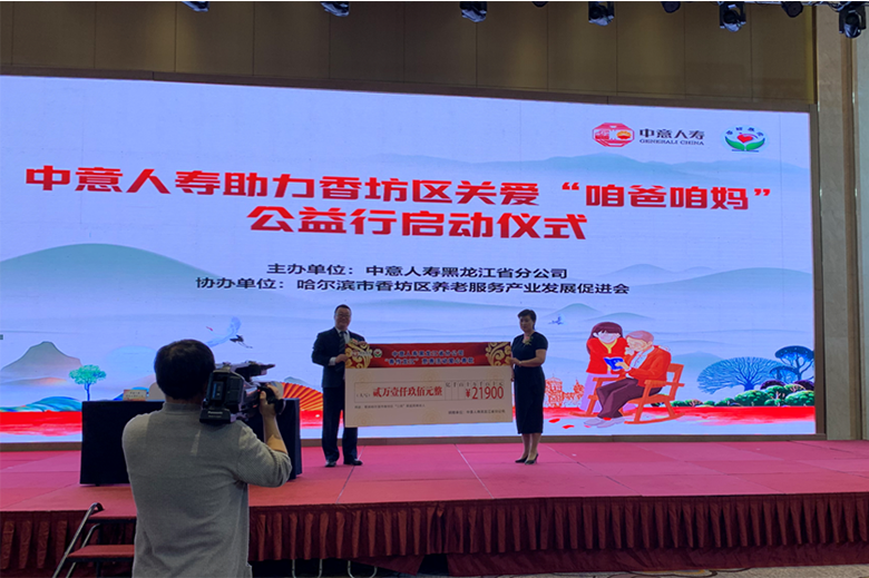 為傳承新時代中華民族的孝道品德、孝道文化和敬老愛老的美好品行,用新時代中國特色社會主義偉大旗幟引領(lǐng)社會廣大愛心企業(yè)的愛心行動,踐行社會主義核心價值觀,凝聚社會慈善公益大愛的力量,共同托起困難老年人的幸福生活,把黨的溫暖和關(guān)懷送到困難老年人的身邊,中意人壽黑龍江省分公司主辦,哈爾濱市香坊區(qū)養(yǎng)老服務(wù)產(chǎn)業(yè)發(fā)展促進(jìn)會協(xié)辦“善傳龍江”慈善公益活動,助力香坊區(qū)2019關(guān)愛《咱爸咱媽》公益行活動。活動于2019年5月28日正式啟動,并完成首次捐贈。